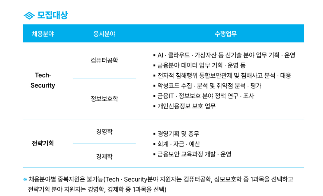 | 금융보안원 기술직 | 금융 보안 사고 분석 및 인프라 보안 강화 | 링크 / ![]() |