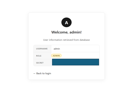 SELECT username, role, secret FROM users WHERE username = 'admin' --' AND password = '...'
