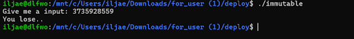 이름처럼 프로그램 내부에는 수정할 수 없는(Immutable) 상수가 존재했고, 이를 사용자의 입력값으로 변조하여 조건문을 통과하는 것이 핵심이었습니다.