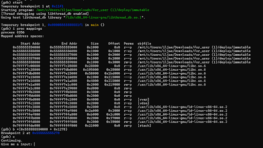 소스 코드가 없는 바이너리였기에 GDB와 ltrace를 활용해 내부 로직을 파헤쳤습니다. PIE가 적용되어 있어 start 명령어로 베이스 주소를 확인한 뒤 브레이크포인트를 설정했습니다.