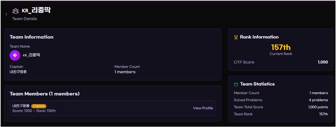 이번 성공에 안주하지 않고, 앞으로는 더 복잡한 보호 기법을 우회하는 기술들을 공부하여 정보보안 전문가로서의 역량을 키워나가고 싶습니다.