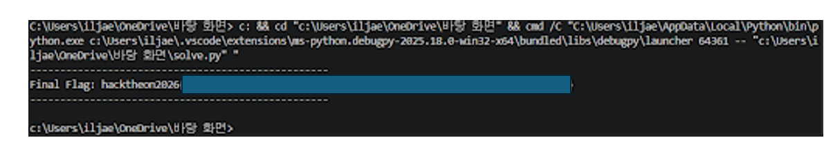 스크립트를 실행하자 암호화되었던 플래그가 선명하게 나타났습니다.