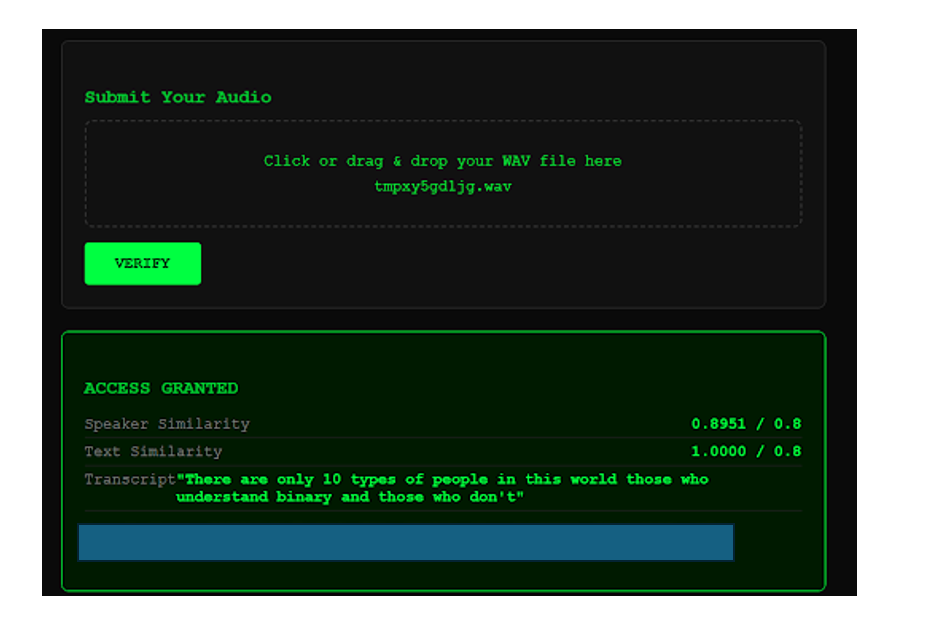 처음에는 Whisper 모델을 이용해 샘플에 숨겨진 메시지를 찾으려 했으나, 이는 단순한 목소리 재료일 뿐이었습니다. 핵심은 Zero-Shot Voice Cloning을 통해 새로운 문장을 생성하는 것이었습니다.