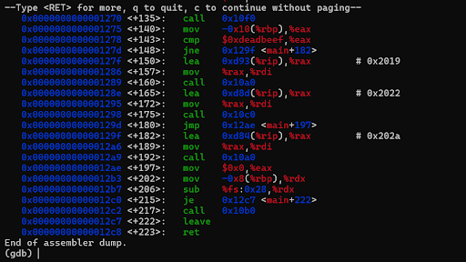 cmp eax, 0xdeadbeef명령어가 실행될 때,rbp-0x10위치의 값을0xdeadbeef로 만들어야 합니다.